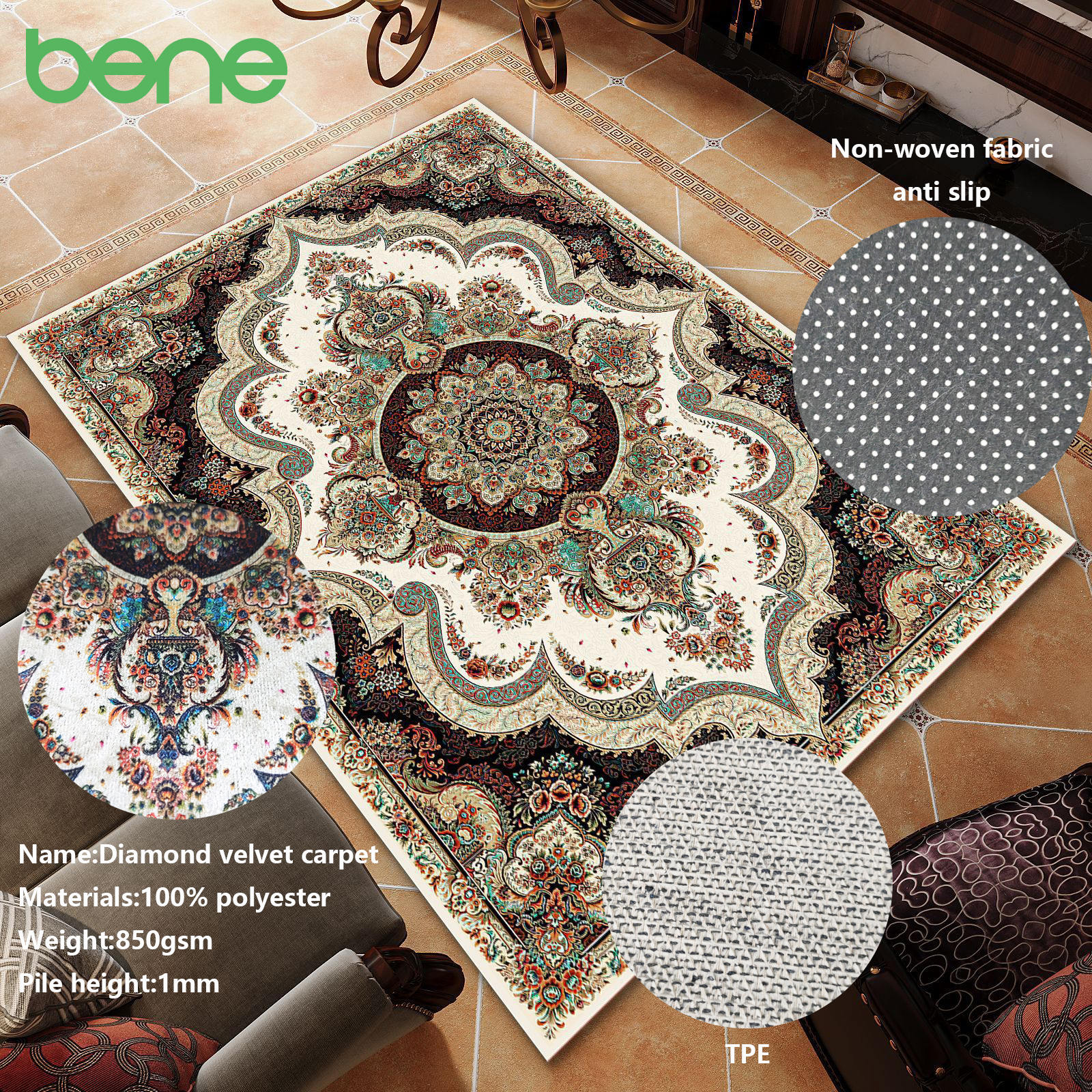 Cégünk szőnyegre, szőnyegszövetre és késztermékekre szakosodott. Az alsó és a felület kombinálásával megszakítja a magas termelési költségek hagyományos termelési módját és az alacsony hatékonyságot a szőnyegiparban, így a szőnyegtermelés egyszerűbbé és hatékonyabbá válik. A Bennek megvan a saját szövése, festési/nyomtatási gyárak és kész szőnyegfeldolgozó gyárak, lehetővé téve számunkra az egész gyártási lánc irányítását, a jó minőség és az átfutási idő megtartása érdekében. A több mint 20 szövetmérnökből álló csapattal negyedévente új szőnyegszöveteket fejlesztünk ki a piaci trendek alapján, és testreszabott szolgáltatásokat is nyújthatunk ügyfeleink igényei szerint. Szőnyegeink és szőnyegeink különféle forgatókönyvekhez alkalmasak, beleértve a nappali, hálószobákat, fürdőszobákat, konyhákat, bejáratokat és kijáratokat és még sok más. Büszkék vagyunk arra, hogy kiváló minőségű termékeket és kiváló ügyfélszolgálatot nyújtunk, és célunk az, hogy Kínában és akár világszerte vezető szőnyegek és szőnyegek gyártója legyen. Mi is tudjuk nagykereskedelmi Gyémánt bársony ima szőnyeg ömlesztve. Világszerte exportunk van._00.jpg)